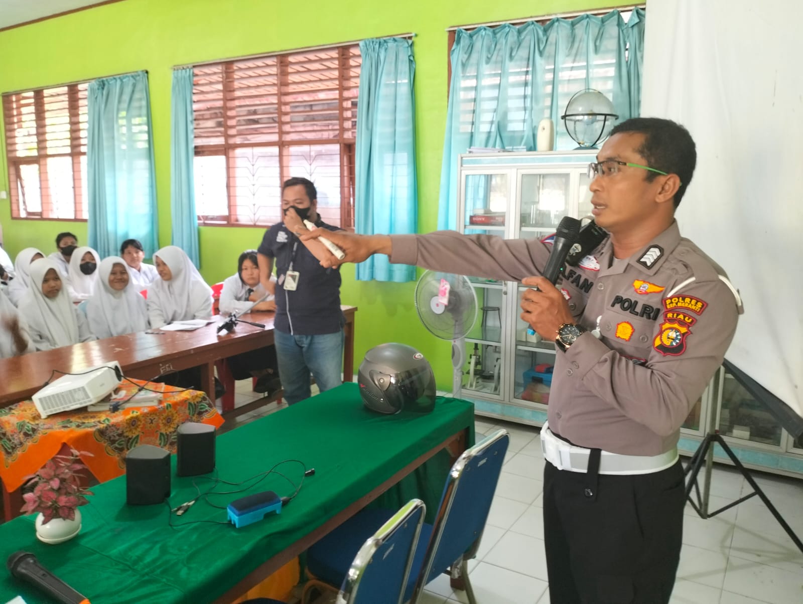 Dalam kegiatan tersebut, petugas Sat Lantas memberikan materi seputar aturan berlalu lintas, penggunaan helm standar, bahaya berkendara tanpa SIM, serta larangan menggunakan ponsel saat mengemudi. Edukasi dilakukan dengan metode interaktif, termasuk simulasi singkat cara berkendara aman di jalan raya.